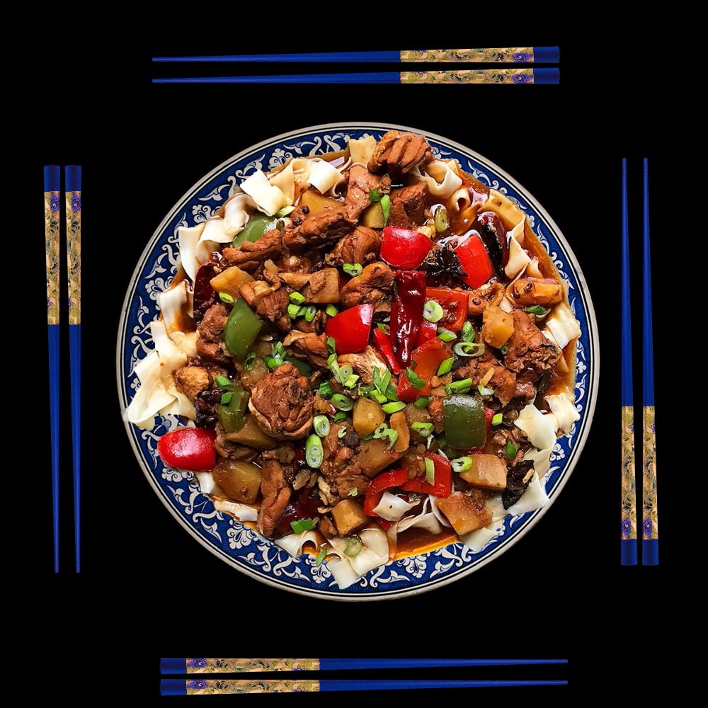 Дапанджи - это блюдо уйгурской кухни, представляет из себя рагу из курицы с овощами, соевым соусом и пряностями. Подается с гарниром из риса, лапши, картофеля. Блюдо широко распространено на Востоке.
