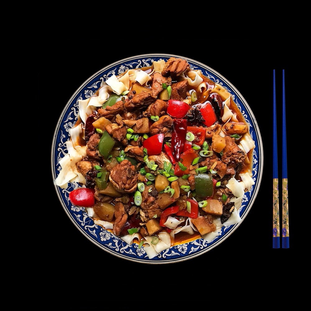 Дапанджи - это блюдо уйгурской кухни, представляет из себя рагу из курицы с овощами, соевым соусом и пряностями. Подается с гарниром из риса, лапши, картофеля. Блюдо широко распространено на Востоке.